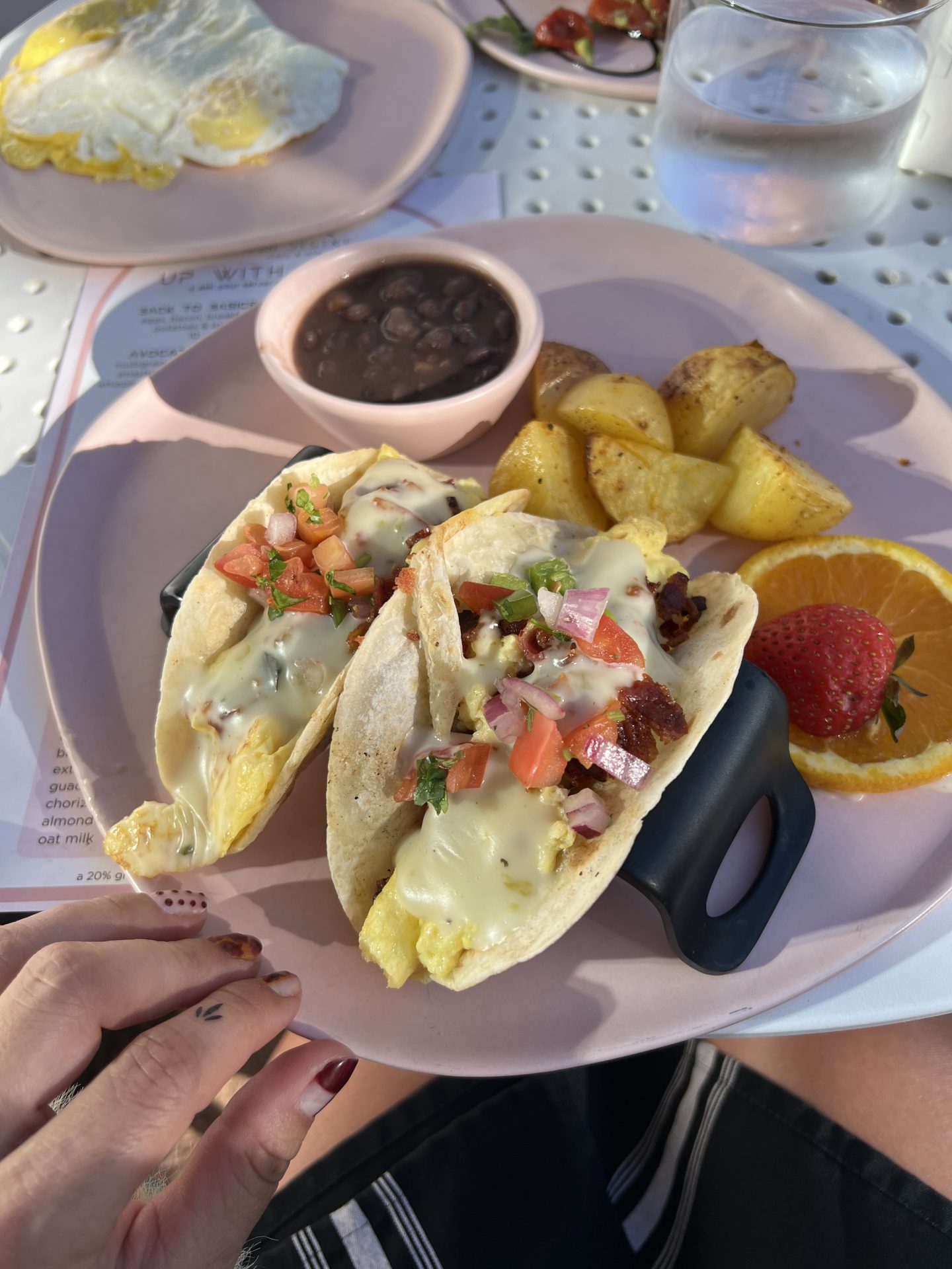 A highlight of our stay was the complimentary breakfast at the hotel’s restaurant. As a Santa Fe native, I was thrilled to find the breakfast tacos and waffles perfectly satisfying my cravings. For dinner, Sara and I indulged in nachos and a cheese board that were both delicious and fulfilling.