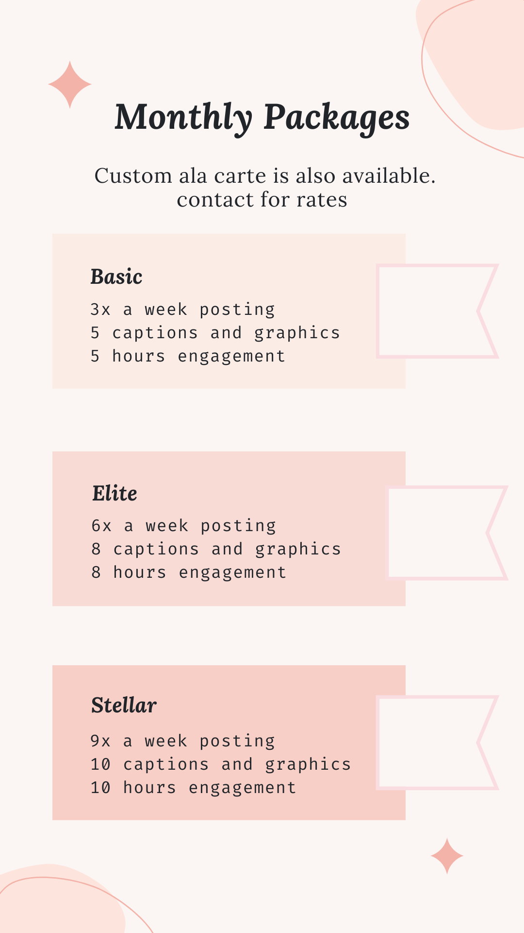 6. Platform Management: From Instagram to Facebook, Twitter to TikTok, we’ll manage all aspects of your social media presence across multiple platforms, ensuring consistency and effectiveness.
