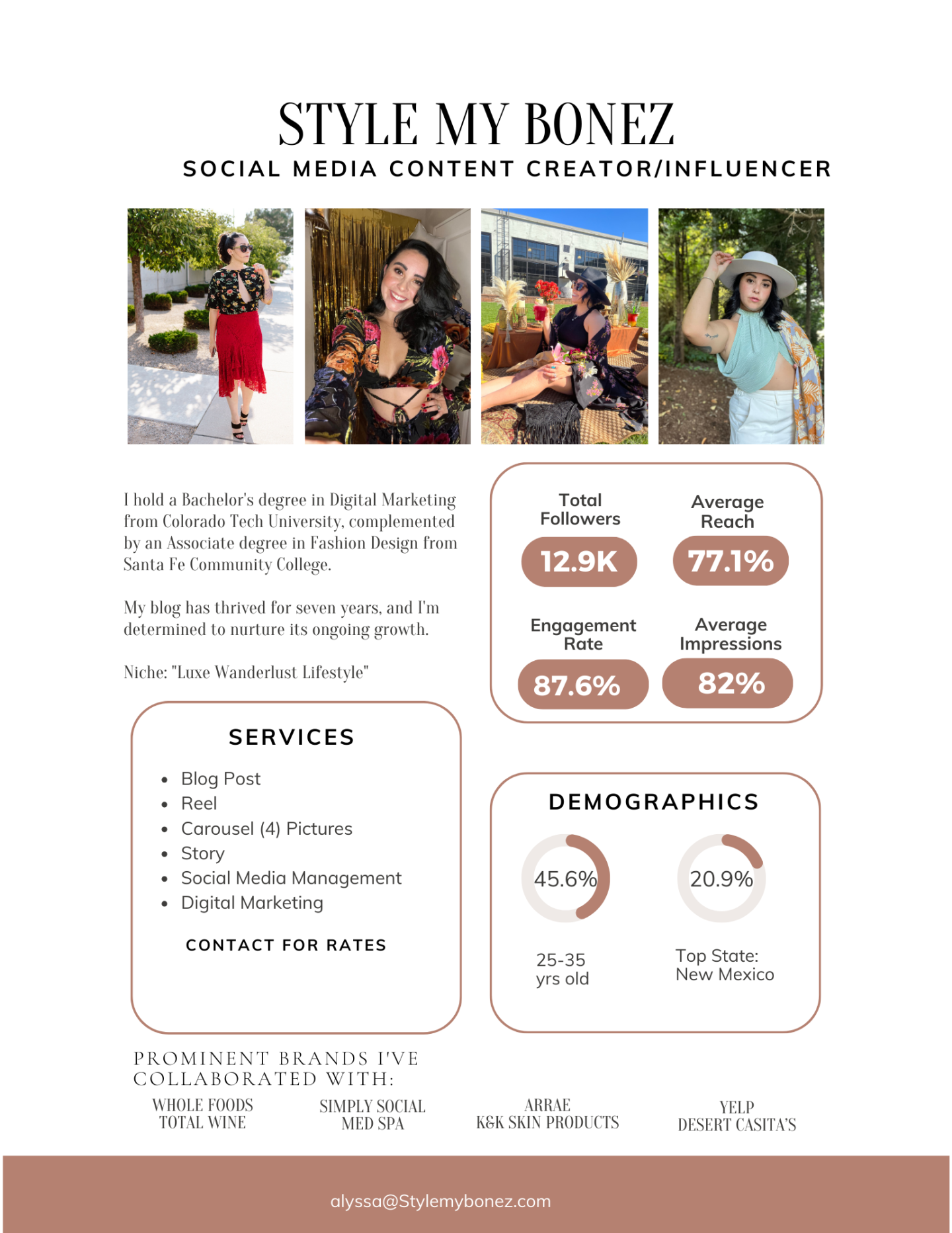 Hi everyone! 👋 I’m Alyssa Nevarez-Olguin, the Founder + CEO of Style My Bonez. I’m deeply passionate about fashion, food, yoga, nurturing houseplants, and exploring the world with my wife. My ultimate goal? Empowering entrepreneurs and businesses to shine online!